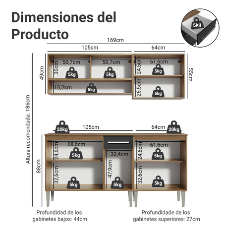 12x de $ 1,094.08 sin intereses9% OFF$ 13,12900$ 14,44200Precio unitario /AgotadoCocina Compacta 169cm Marrón/Negro Emilly Dance 07
