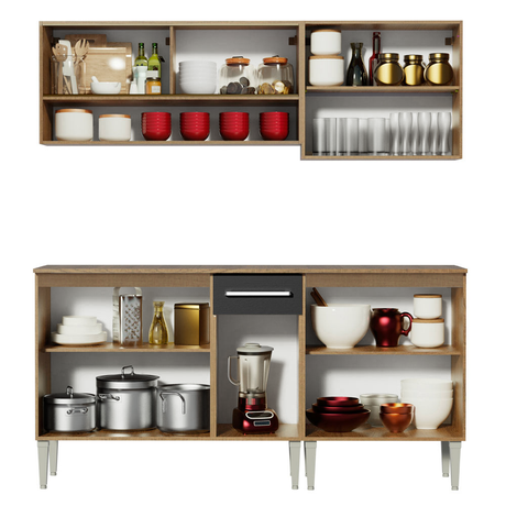Cocina Integral Esquinera 293cm Marrón Emilly Open 01