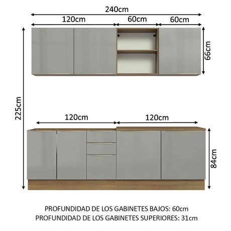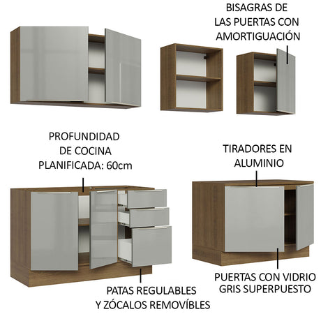 Cocina Integral 240cm Lux Marrón/Gris 05