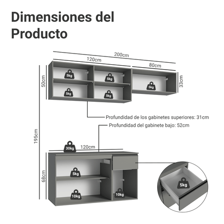 12x de $ 1,304.67 sin intereses$ 15,65600Precio unitario /AgotadoKit con 2 Muebles de Cocina 4 Puertas y 3 Cajones (Sin ...