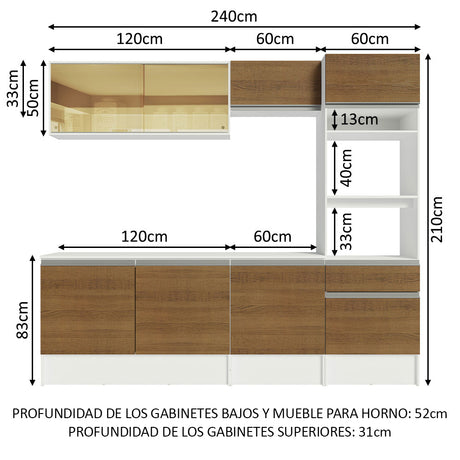 Cocina Integral 240cm Blanco/Marrón Topazio 05