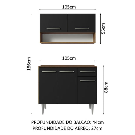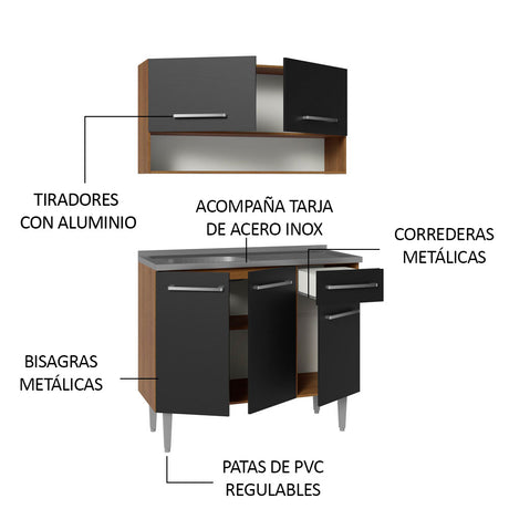 Cocina Integral 105cm Marrón/Negro Emilly 03