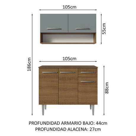 Cocina Integral 105cm Marrón Emilly 03