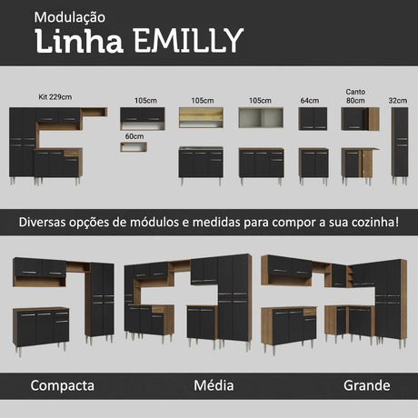 Cocina Integral 325cm Marrón/Negro Emilly 02