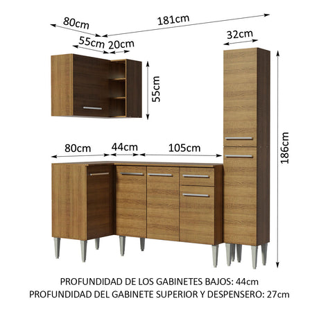 Cocina Compacta 169cm Marrón Emilly Fly 05