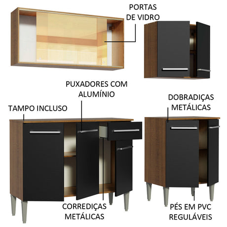 Cocina Integral 201cm Marrón/Negro Emilly Fast 02