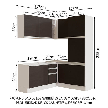 - SUPER PRECIOCocina Integral Esquinera 269cm Marrón/Negro Glamy 01 18x de $ 1,059.72 sin intereses15% OFF$ 19,07500$ 22,50100Precio unitario /Agotado