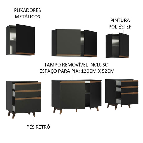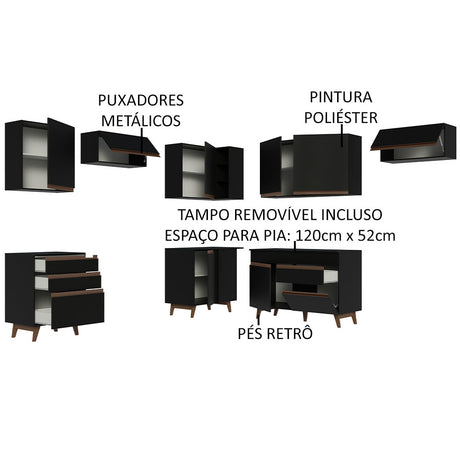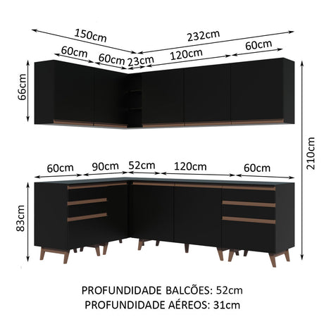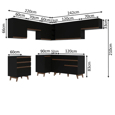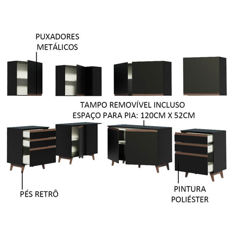 Cocina Integral Esquinera 462cm Reims Negro 03
