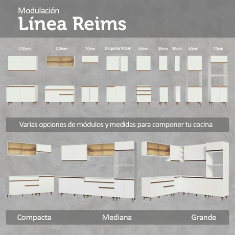 En Madesa, encontrarás una variedad de cocinas integrales con diferentes colores, tamaños, cantidad de módulos, profundidad y precios. También están disponibles en formatos lineales y en esquina.