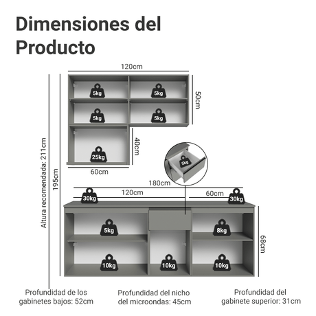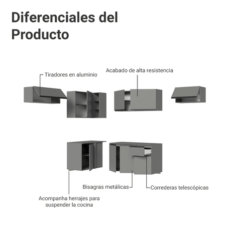 18x de $ 1,463.72 sin intereses9% OFF$ 26,34700$ 28,98200Precio unitario /AgotadoCocina Integral 240 cm Sin Patas Nice Gris 07