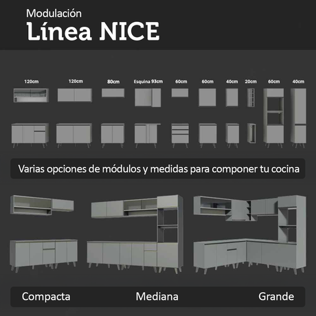 18x de $ 1,291.56 sin intereses9% OFF$ 23,24800$ 25,57300Precio unitario /AgotadoCocina Compacta 180 cm Sin Patas Nice Gris 03