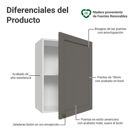Los gabinetes superiores son esenciales en cualquier cocina, ya que ocupan menos espacio y ayudan a optimizar la organización, manteniendo todo al alcance cuando lo necesites. Además de ser muy prácticos, la variedad de opciones disponibles te permite elegir el modelo que mejor se adapte a tus gustos y necesidades.