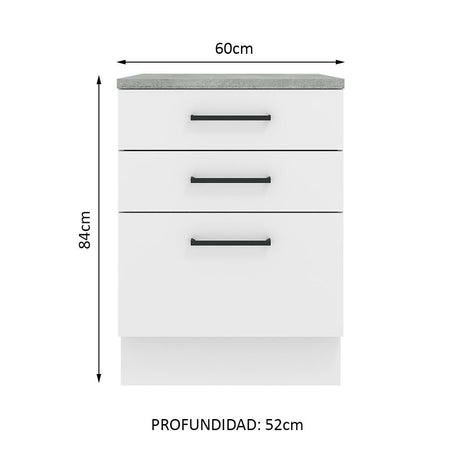 Gabinete Bajo 60 cm 3 Cajones Blanco Agata