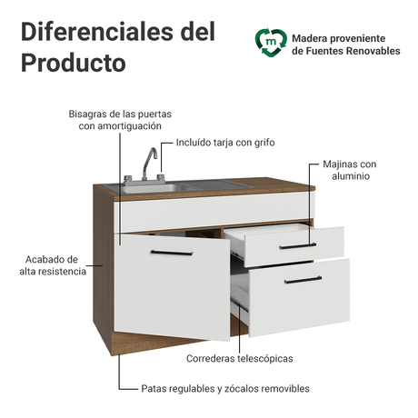3x de $ 1,559.67 sin intereses31% OFF$ 4,67900$ 6,79080Precio unitario /Agotado Gabinete Bajo para Tarja 120 x 60 cm 2 Puertas (Con Enc...