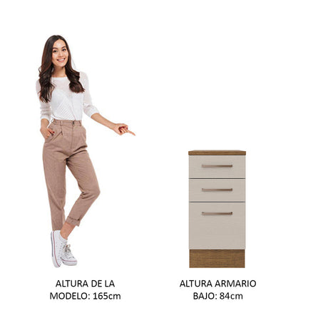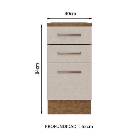 Gabinete Bajo 40 cm 3 Cajones Marrón/Crema Agata
