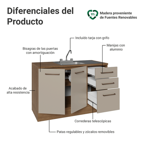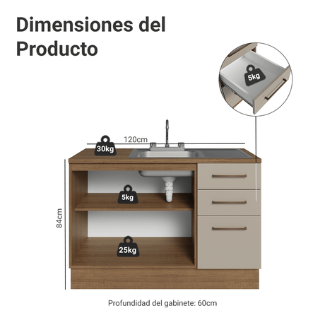 3x de $ 1,776.33 sin intereses19% OFF$ 5,32900$ 6,58680Precio unitario /AgotadoGabinete Bajo para Tarja 120 x 60 cm 1 Puerta 2 Cajones...