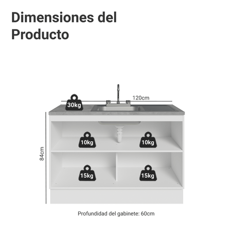 Isla de Cocina y Gabinete Bajo (Sin Encimera) 120 cm Bl...