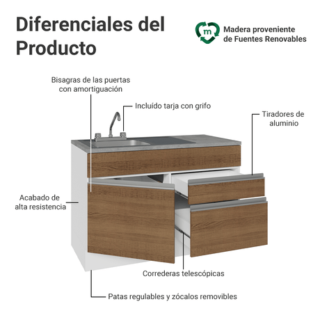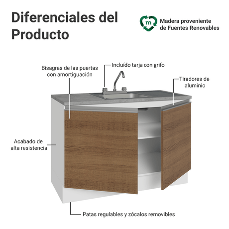 Gabinete Bajo para Fregadero con Accesorios de Cocina 1...