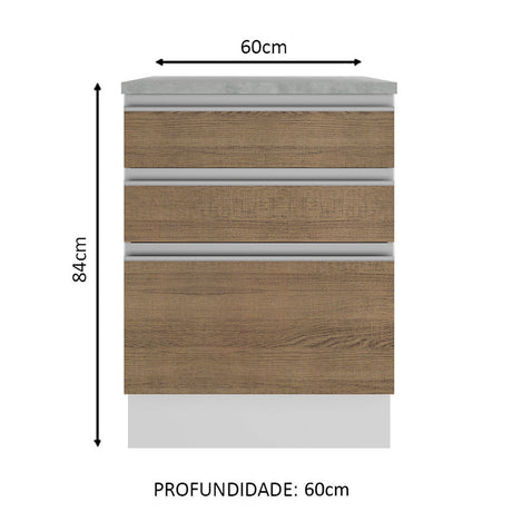 Gabinete Bajo 60 x 60 cm 3 Cajones Glamy (Con Encimera)...