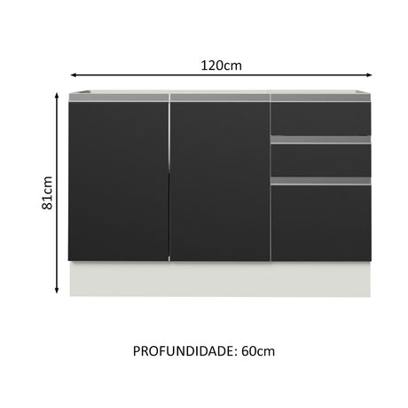Gabinete Bajo de Tarja 120 x 60 cm 1 Puerta 2 Cajones B...