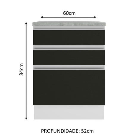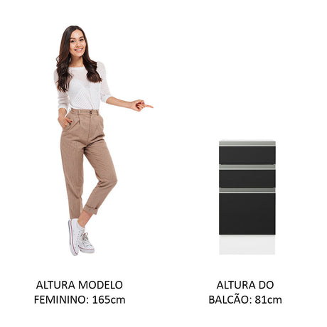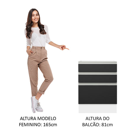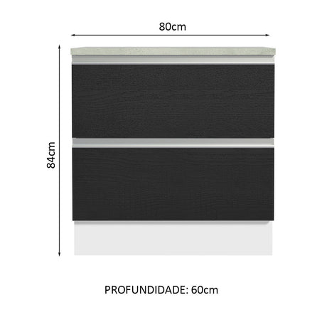 Gabinete Bajo 80 cm 2 Cajones Glamy Blanco/Negro