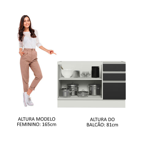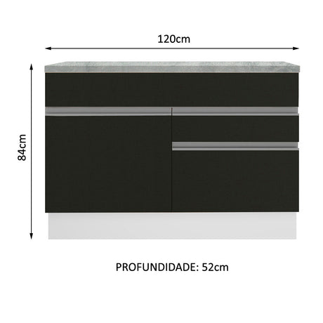 Gabinete Bajo de Tarja 120cm 1 Puerta 2 Cajones Blanco/...