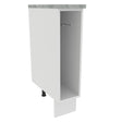Posee dos soportes para paños con funcionamiento a través de una corredera metálica. Incluye encimera en la coloración gris, un tono grisáceo que remite al mármol. Los pies son de PVC con regulación de altura y rodapié removible de madera de fácil ensamblaje.