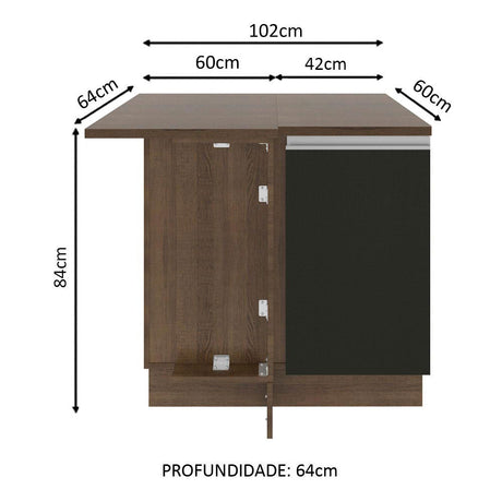 Gabinete Bajo 40 cm 1 Puerta Glamy Marrón/Negro
