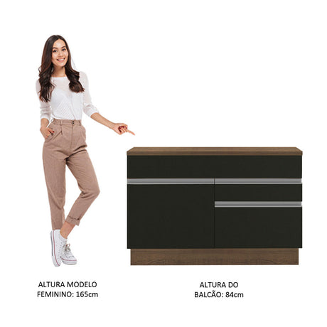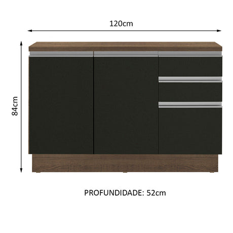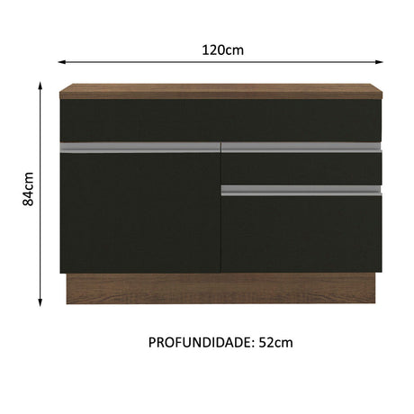 Gabinete Bajo de Tarja 120cm 1 Puerta 2 Cajones Marrón/...