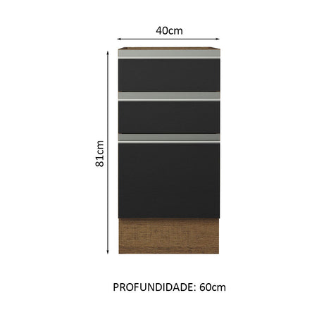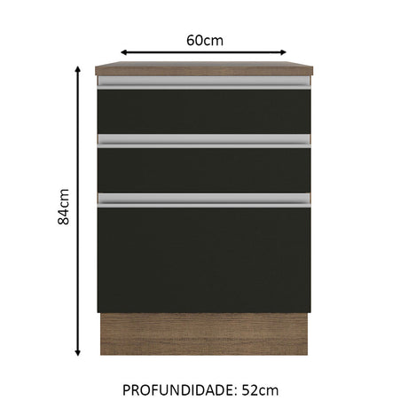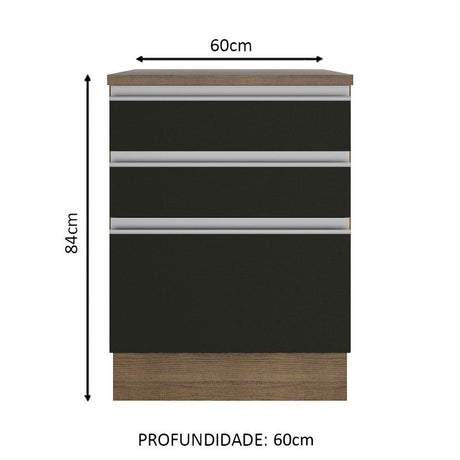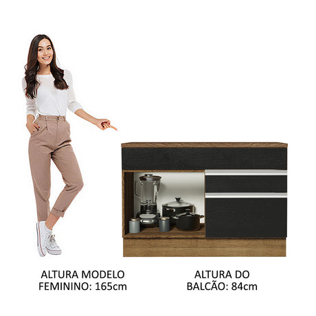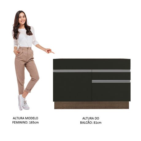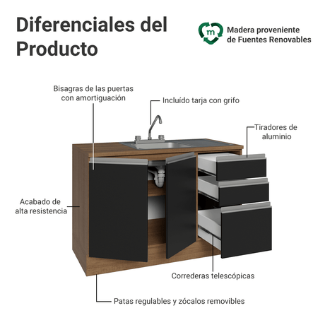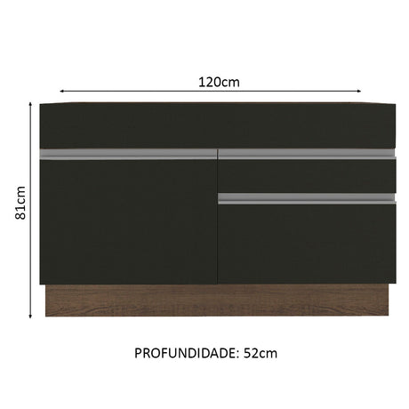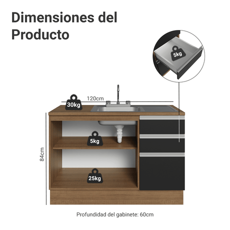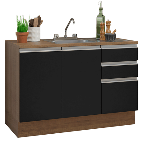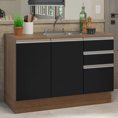 Gabinete Bajo de Tarja 120cm 1 Puerta 2 Cajones Marrón/...