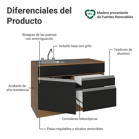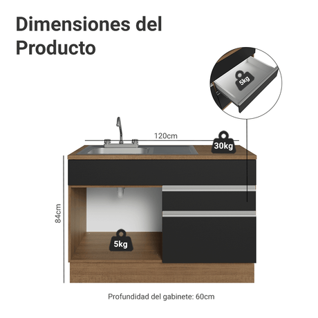 9x de $ 1,023.11 sin intereses16% OFF$ 9,20800$ 11,07200Precio unitario /Agotado Gabinete Bajo para Tarja 120 x 60 cm 2 Puerta 3 Cajones...
