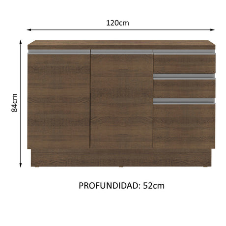 Gabinete Bajo 60 cm 3 Cajones Glamy Marron