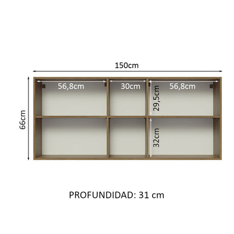 Gabinete Superior 150 cm 2 Puertas y 2 Nichos Glamy Mar...