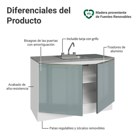 Gabinete Bajo para Fregadero con Accesorios de Cocina 1...
