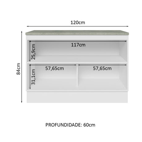 Isla de Cocina con Encimera y Gabinete Bajo 120 cm Blan...