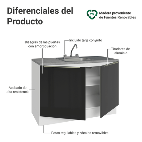Gabinete Bajo para Fregadero 120 cm 2 Puertas (Con Enci...