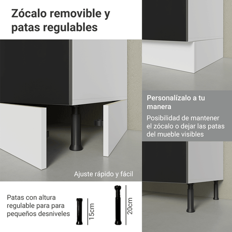 Gabinete Bajo 40 cm 1 Puerta Lux Blanco/Negro