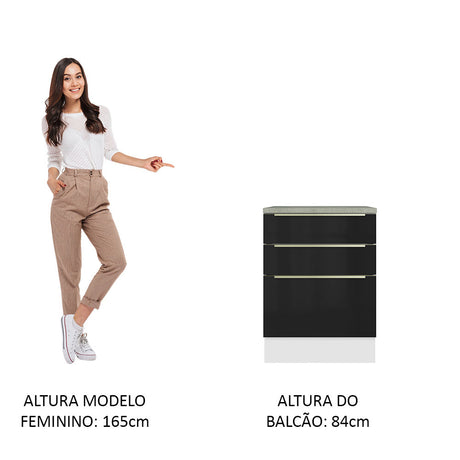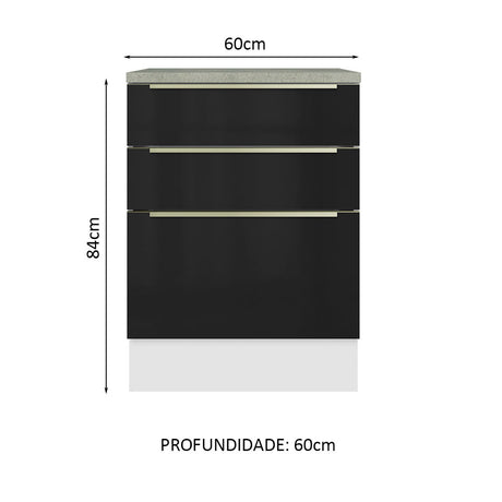 Gabinete Bajo 60 cm 3 Cajones (Con Encimera) Lux Blanco...