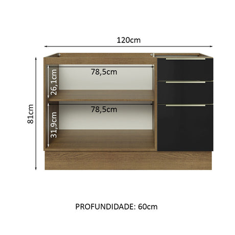 Gabinete Superior 120 cm 2 Puertas Lux Marrón/Negro