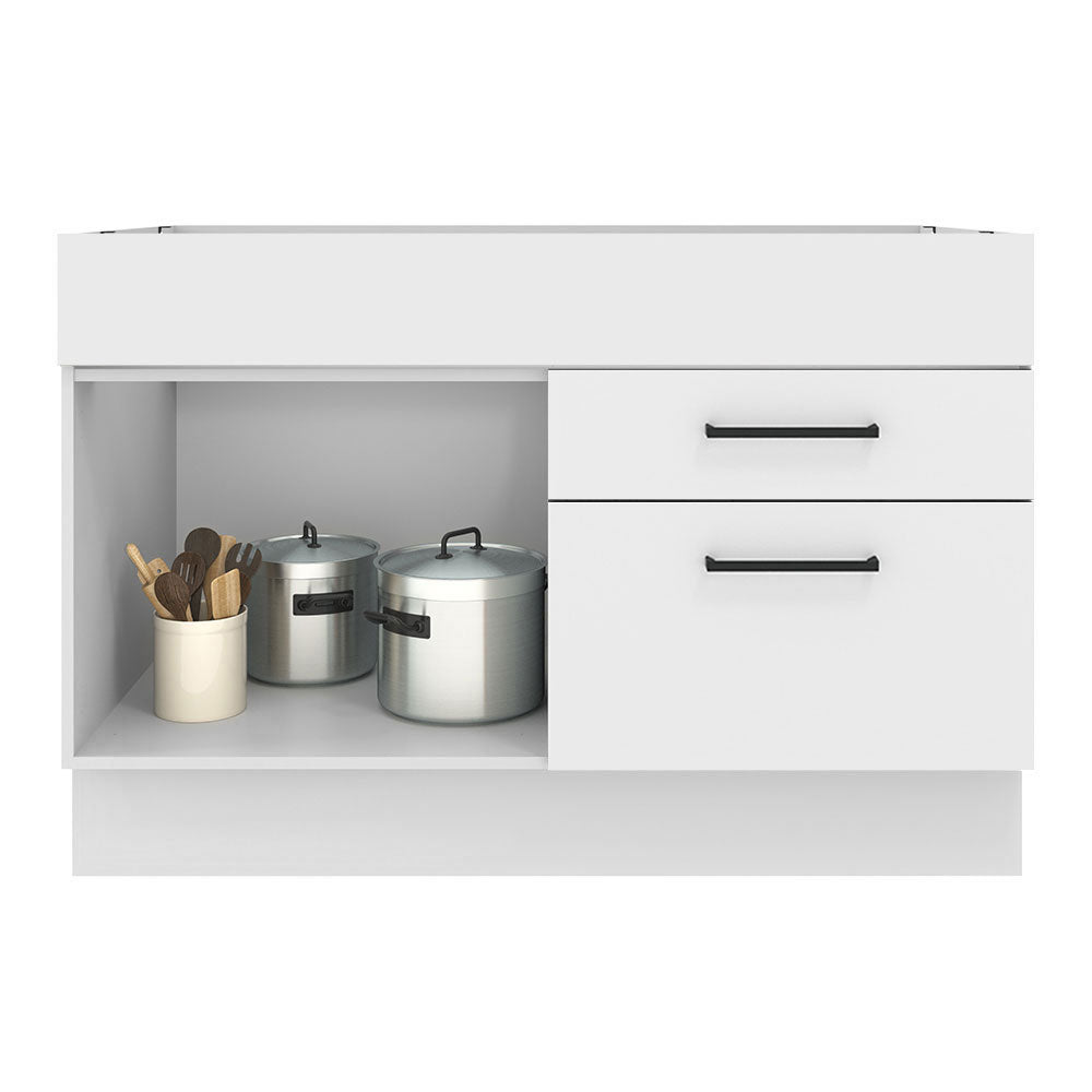 Mueble de Cocina para Fregadero 120cm 1 Puerta y 2 Cajones (Sin Encimera ni Fregadero) Blanco Agata
