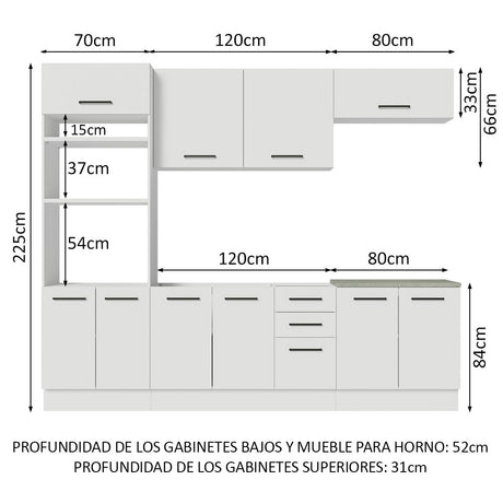 9x de $ 1,157.56 sin intereses22% OFF$ 10,41800$ 13,37300Precio unitario /AgotadoCocina Integral 270cm Blanco Agata 05