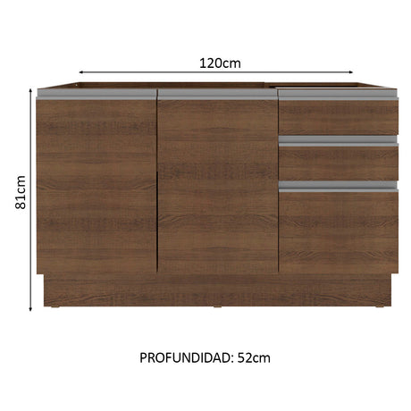 Gabinete Bajo Fregadero Glamy 120 cm 2 Puertas y 3 Caj...