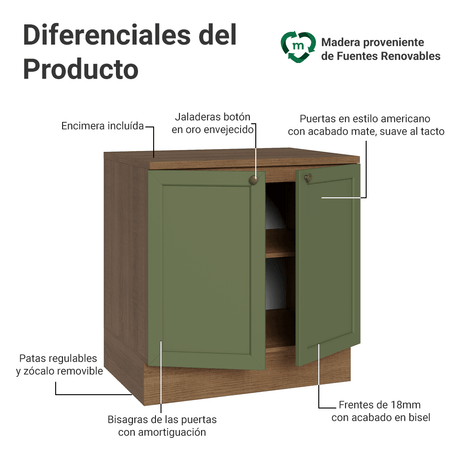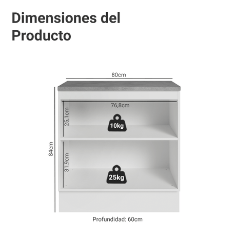 9x de $ 993.22 sin intereses$ 8,93900Precio unitario /AgotadoGabinete Bajo de Cocina 80 x 60 cm 2 Puertas (Con Encim...