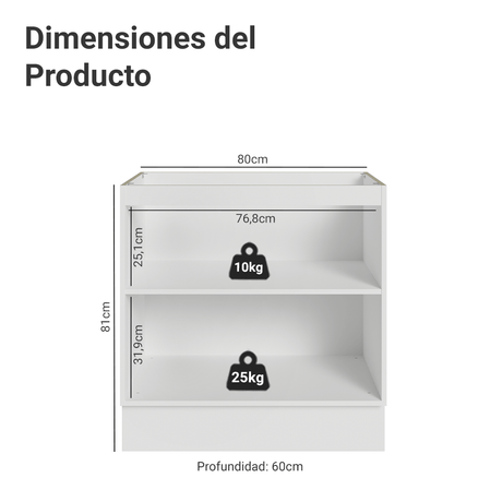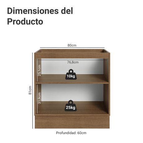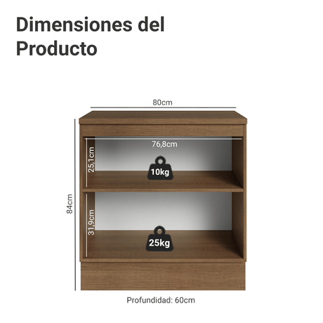 9x de $ 1,057.67 sin intereses$ 9,51900Precio unitario /AgotadoGabinete Bajo de Cocina 80 x 60 cm 2 Puertas (Sin encim...