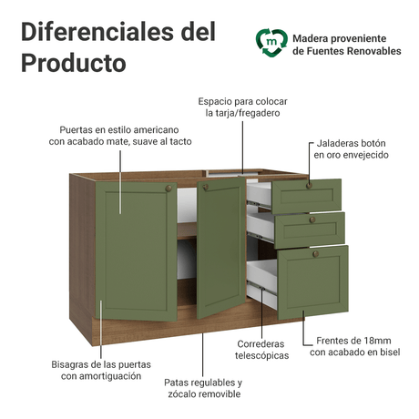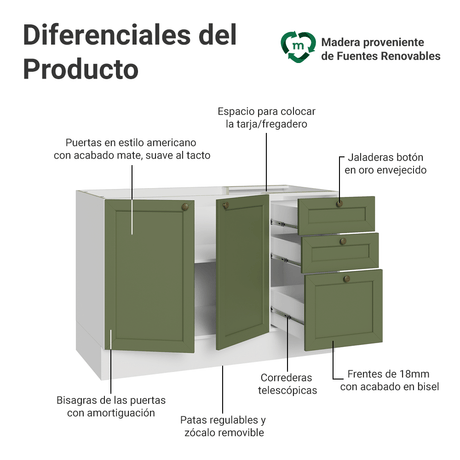18x de $ 1,011.61 sin intereses$ 18,20900Precio unitario /AgotadoGabinete Bajo para Fregadero 120 x 60 cm 2 Puertas 3 Ca...