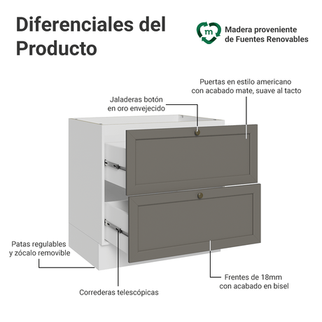 12x de $ 998.25 sin intereses$ 11,97900Precio unitario /AgotadoGabinete Bajo de Cocina 80 x 60 cm 2 Cajones (Sin encim...