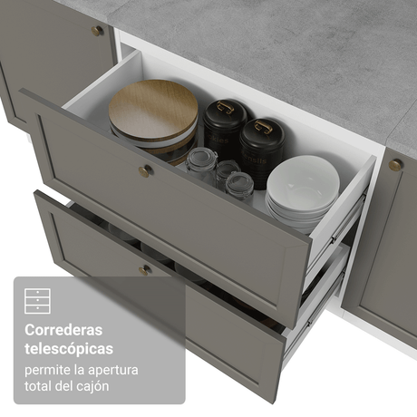 9x de $ 1,136.56 sin intereses$ 10,22900Precio unitario /AgotadoGabinete Bajo de Cocina 80 x 60 cm 2 Cajones (Con Encim...
