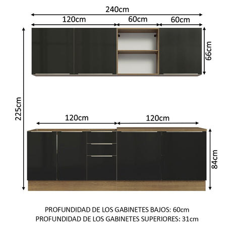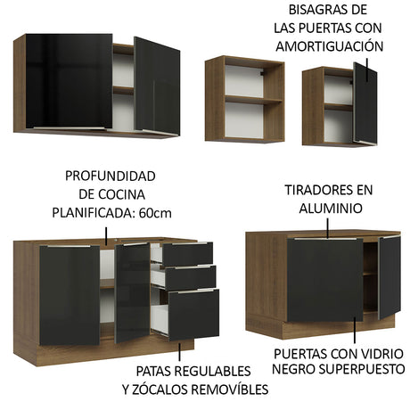 Cocina Integral 340 cm Lux Marrón/Negro 01
