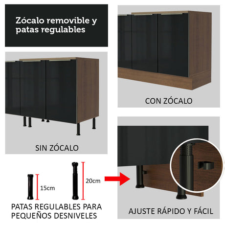 18x de $ 1,419.17 sin intereses12% OFF$ 25,54500$ 29,28750Precio unitario /AgotadoCocina Integral 240cm Lux Marrón/Negro 05
