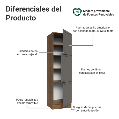 Despensero 60 cm 3 Puertas Marrón/Gris Vik Madesa